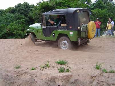 Já na segunda viagem à Moeda, foram eu, Rose e Chico no Edwaldo, e o compadre Pitt's, com a comadre Selma, Mariana, Thales e o Vinícius na Justina, a Rural deles. O Beto não foi. Tinha terminado o namoro com a Mariana mais uma vez. Esses dois já terminaram umas trinta vezes, e nem damos papo para esse assunto mais. O caminho foi o mesmo, só que dessa vez, ao chegar na Cachoeira da Toca, inventei de ir até a beira do rio Paraopeba com o Edwaldo. "Pula ai dentro, Thales. Vão lá na beira d'água." E o Thales cabreiro: "Será que esse Jeep num vai atolar na areia não?" Disse à ele que a chance era grande, os pneus do Edwaldo definitivamente não são para areia, ainda mais areia fofa. Mas a Justina estava lá, e qualquer problema era só amarrar o Edwaldo nela e arrancar ele do enrosco. Acabou que o Edwaldo foi e voltou da beirada do rio, saindo sozinho do areião. Tive um pouco de dificuldade no último trecho, subindo o morrinho de areia, mas estava tranqüilo, pois a Justina estava com os pés no chão firme, e já ao alcance da corda. Mas deu certo.